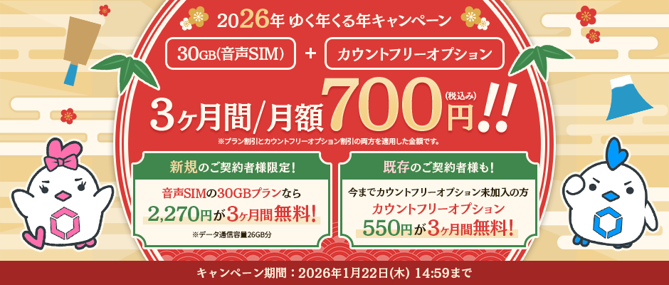 カウントフリーオプションを追加します。オプション価格:550円/月額