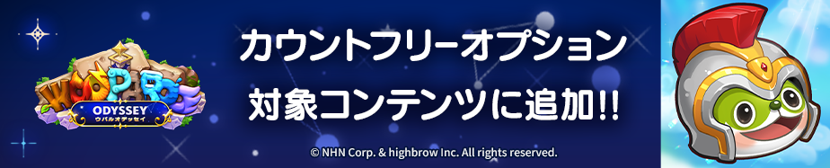 - カウントフリーオプション対象のゲームおよびコンテンツ、SNSは今後予告なく変更または追加となる場合がございます。